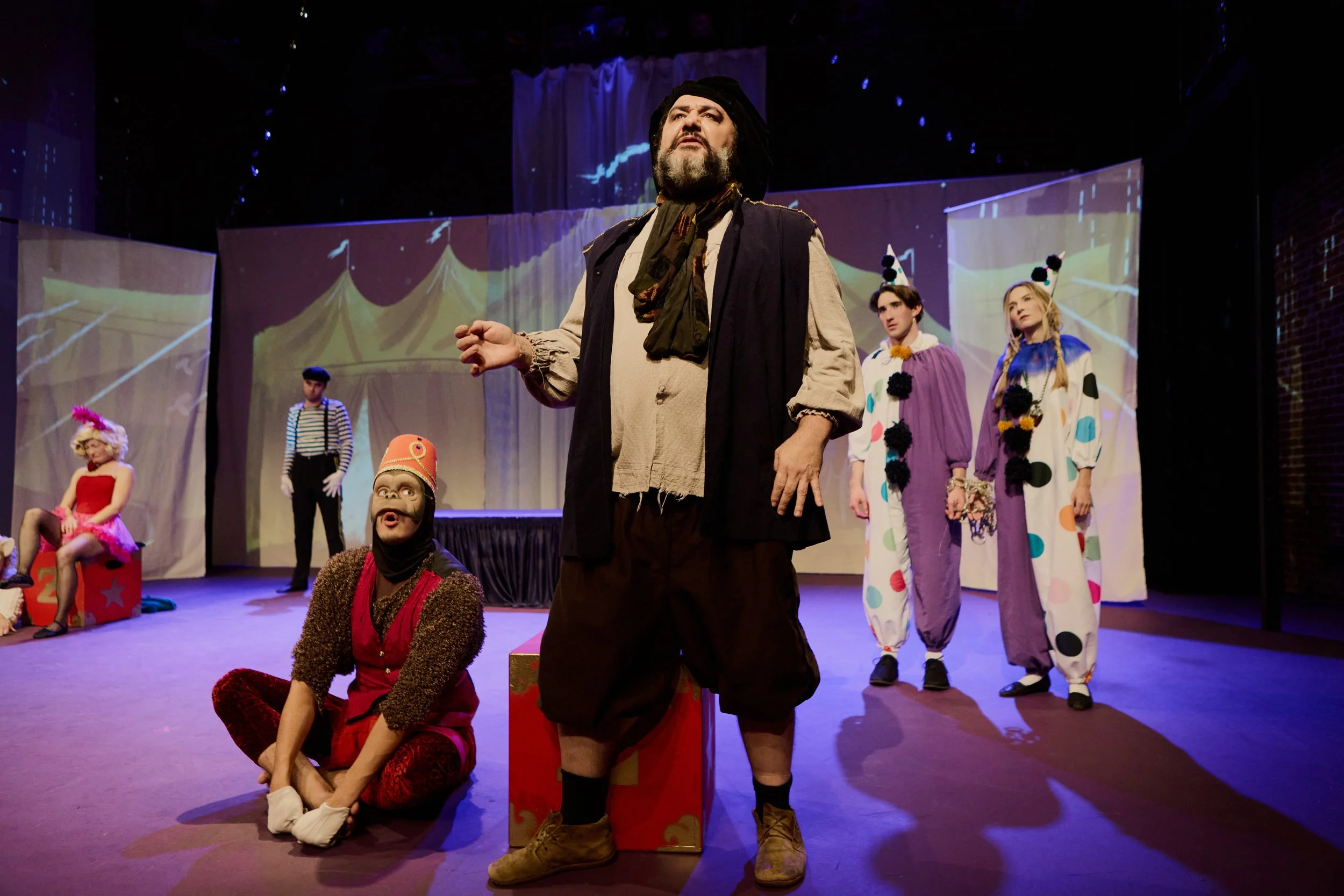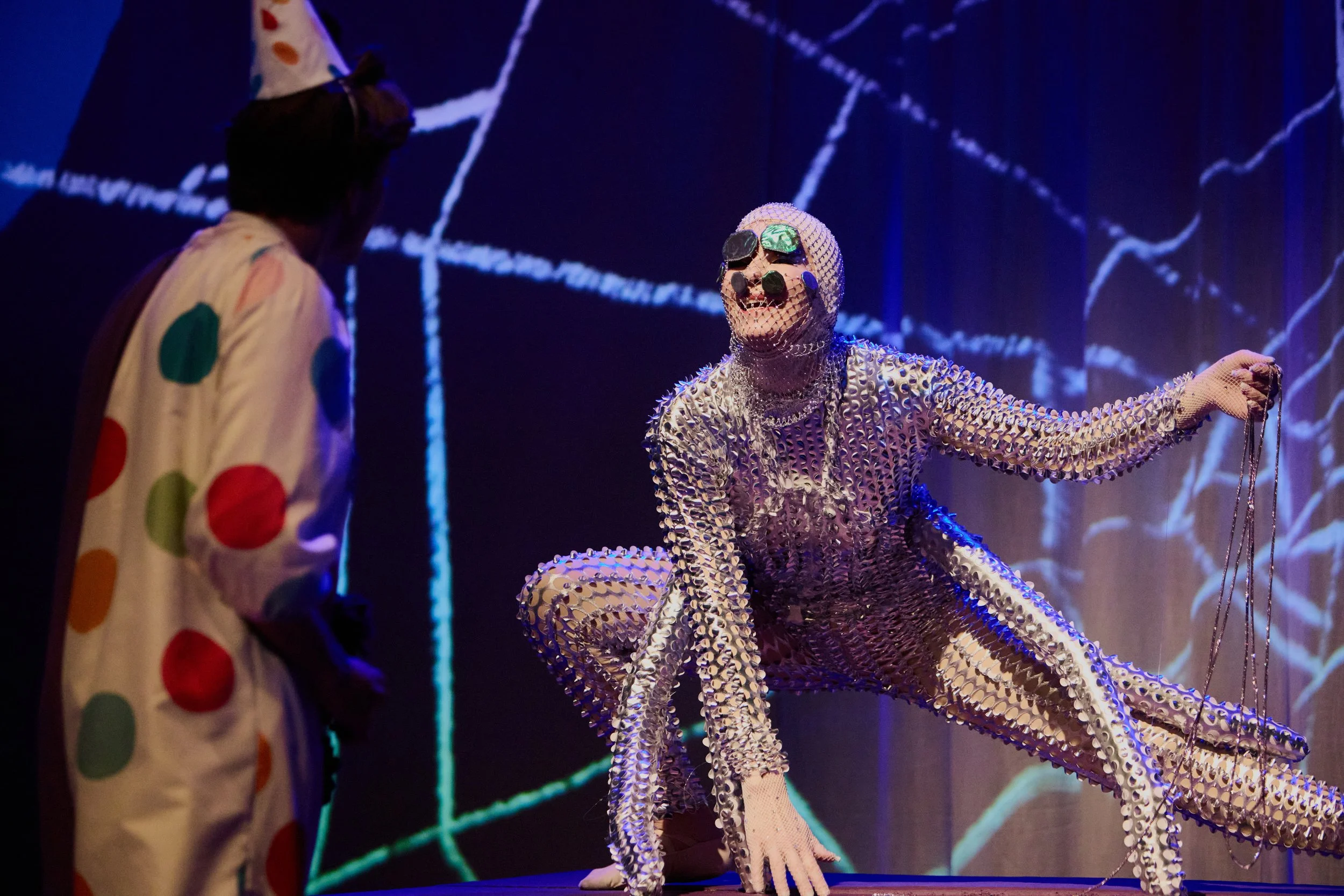 Traditionally, holiday shows at The Actors’ Gang were variety nights with specialty acts, skits and such. We agreed, however, to try something different: an original fairy tale fantasy play with music. Originally, the goal was to try to work specialty acts into the show itself. The character of the Ice Spider, for example, was imagined to be played by an aerialist, and there is a whole sequence set in a circus.
