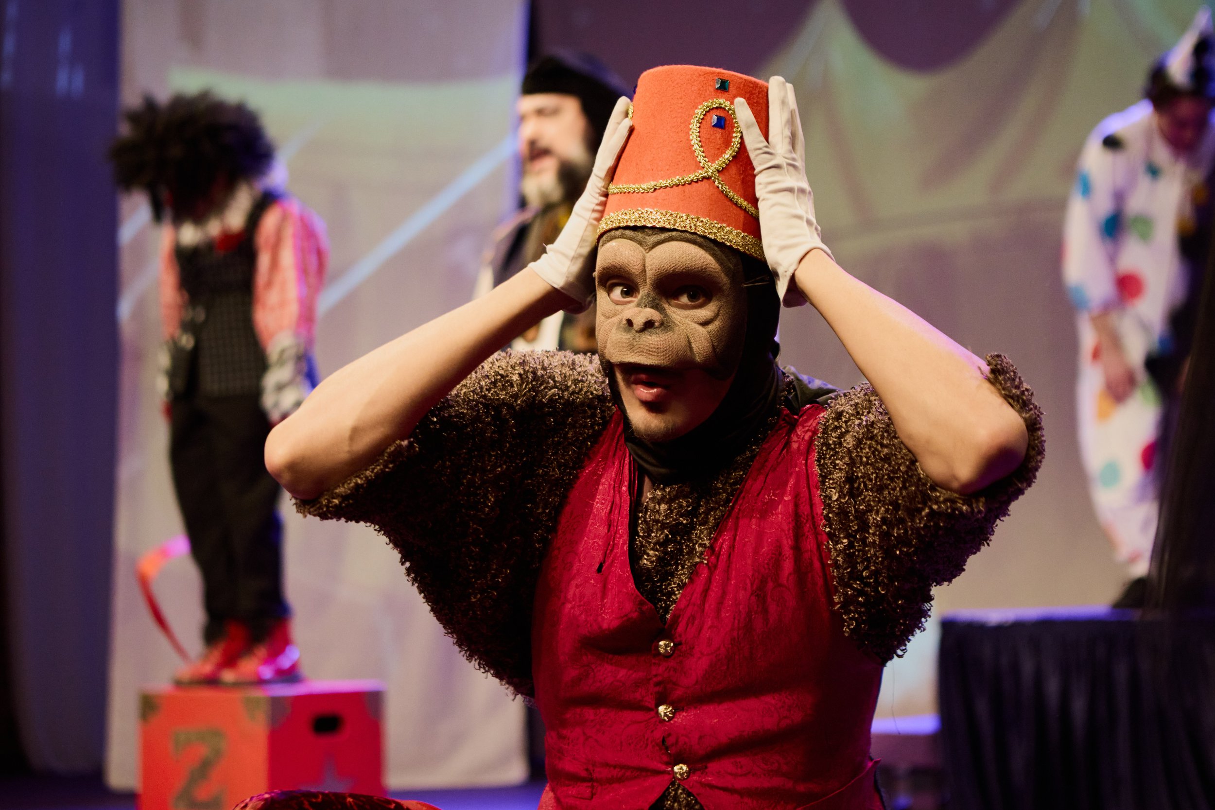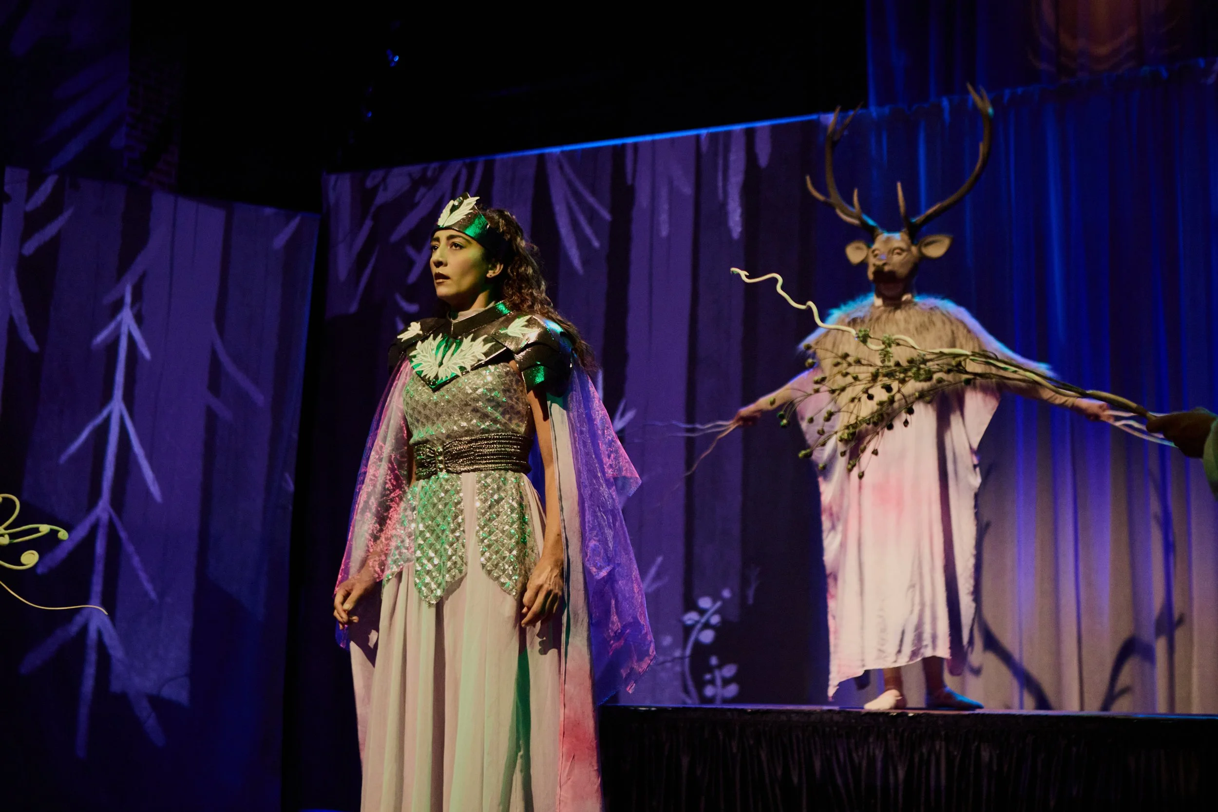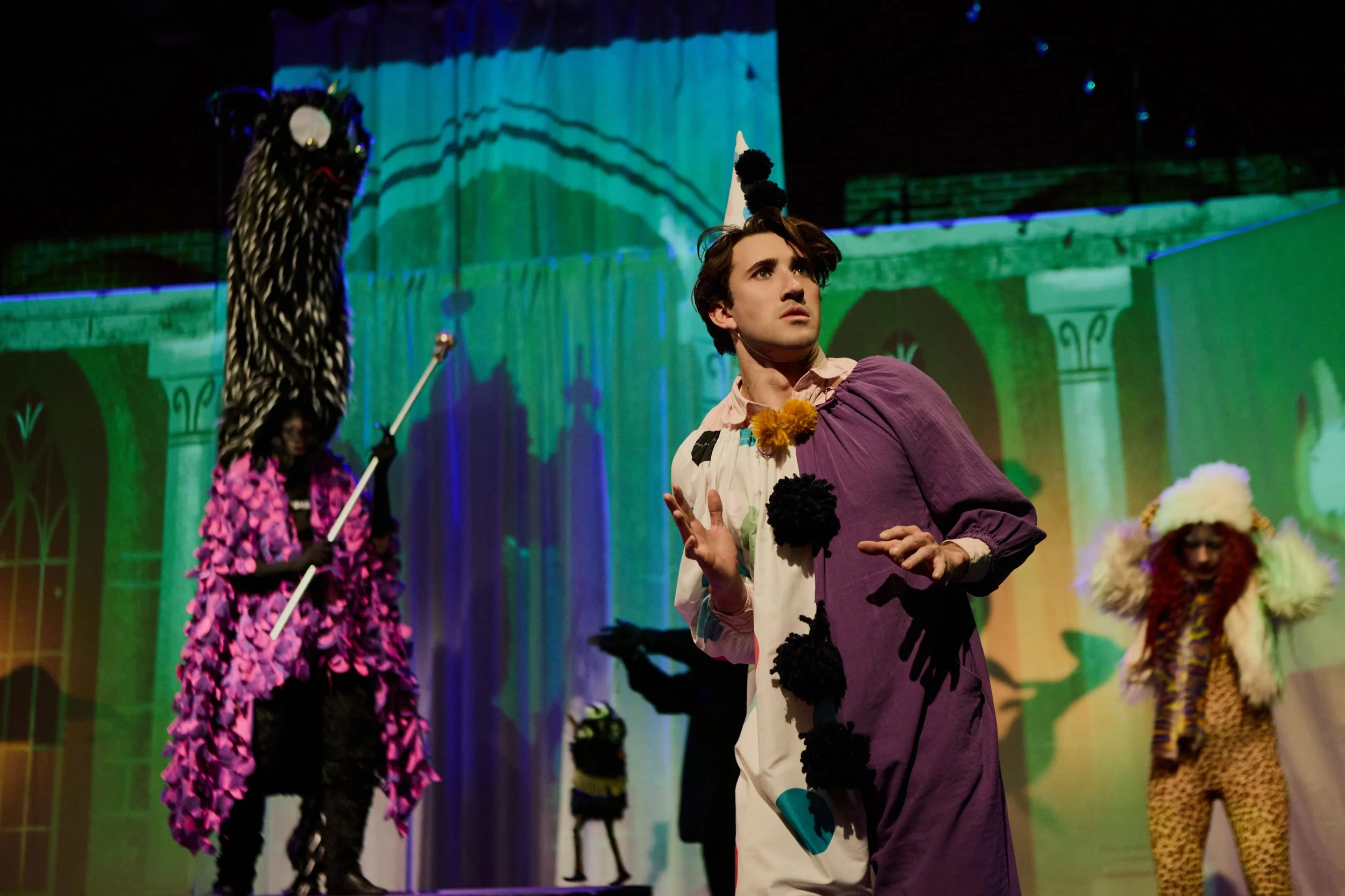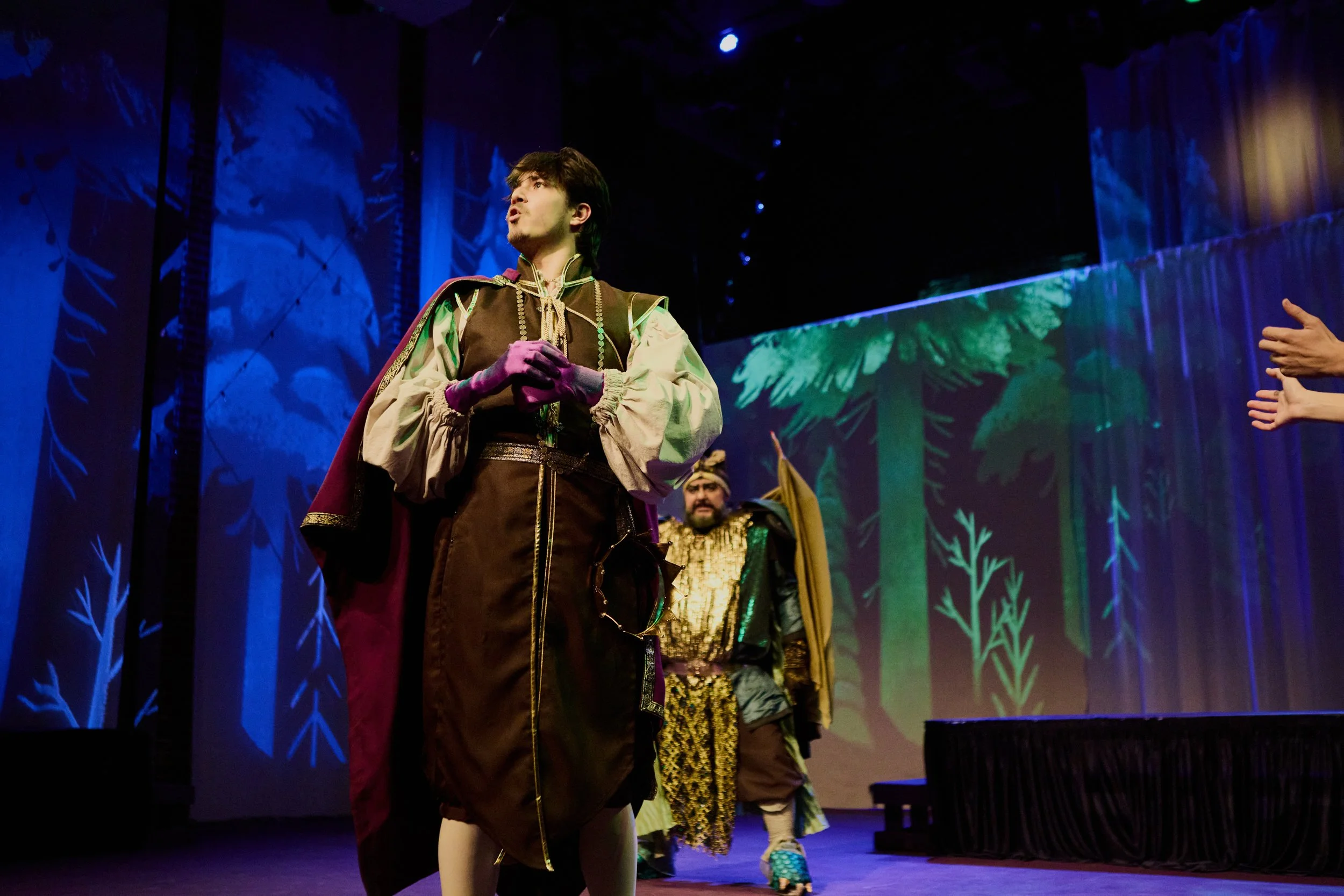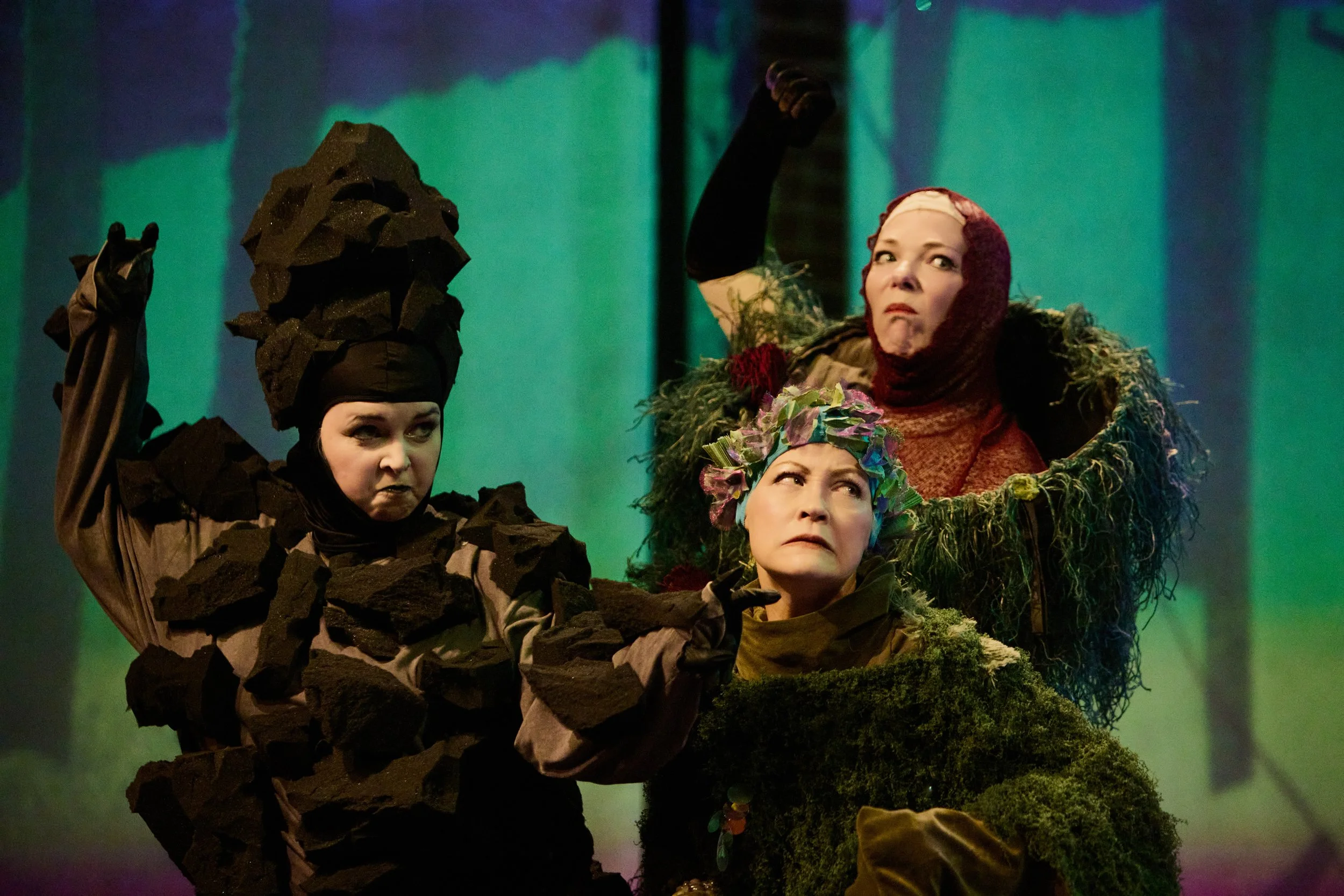 Nico Fife as the Emperor Weasel, Jacob Dodson as Spruce, Zoe Molina as Zelda. Photo by Bob Turton Photography.